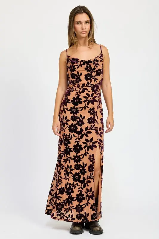 Floral cowl neck maxi dress. Adjustable straps. Perfect wedding guest dress or a special occasion piece.